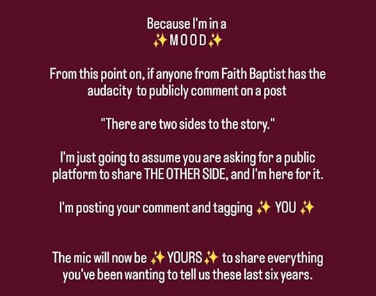 One complete viewing of Let Us Prey is enough to realize that the women featured DID mention their abuse and reported it to their religious leaders (consistent with the beliefs of the IFB) and police. As for the “two sides to every story,” That argument has been faced head-on. April Avila, a victim of her youth pastor’s predations, perfectly expressed her frustration in a Facebook post.