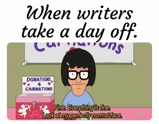 Most of my days were wide open, and I did my best to use them wisely. For the last two weeks, I concentrated on my WIP. What felt like a complete disaster of a novel is finally taking shape. According to my Facebook Memories, this feeling is common for me. It turns out I made a series of GIFs about writing a year ago today, and they perfectly relay my current feelings.