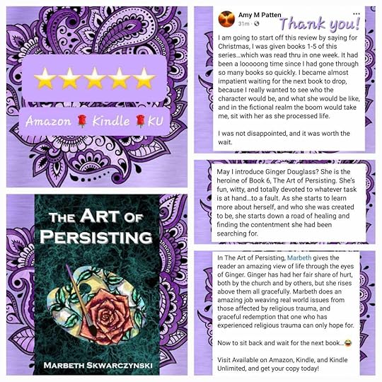 Along with my Beta team were early readers of my new release who immediately reviewed, rated, and recommended The Art of Persisting. I am so very thankful for their support and kindness.