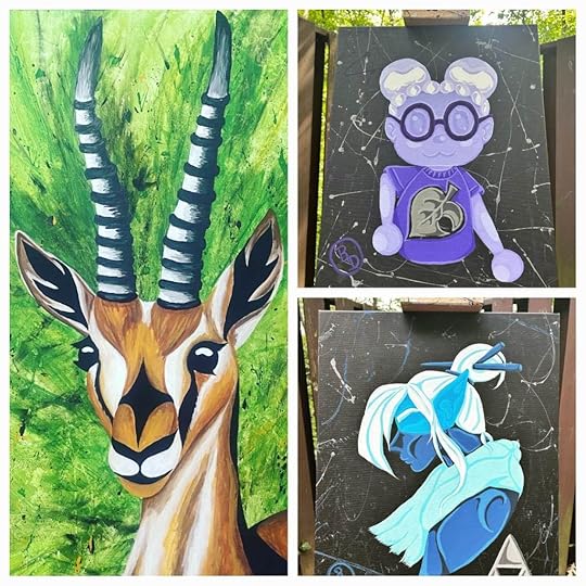 Kaylene’s talent can be seen in her acrylic paintings as well. She painted the iris series for me as a gift, knowing that they are my favorite flower. The gazelle was a commissioned work. The video game paintings are the first two in a series she’s painting for her home.
