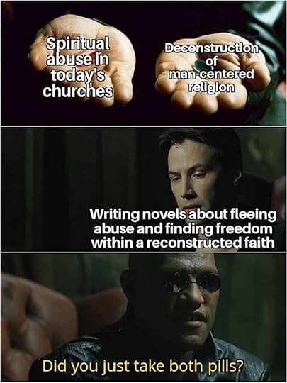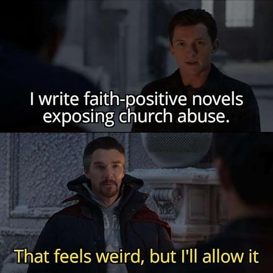 I try to keep my novels conversational and sprinkle some lightness and wit throughout because my primary subject matter is pretty heavy (church abuse). I also break up the serious nature of my books with–you guessed it!–memes!