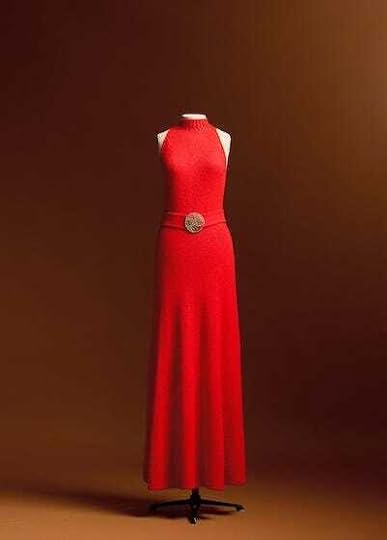 The ‘Lady in Red’ is a winner from the vintage collection includes a stunning red knitted maxi dress from the early 1970s, featuring crochet details on a high-neck collar.