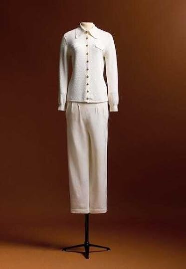 This two-piece white pantsuit captures the easy-California spirit of St. John Knits.