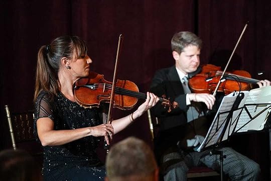 The post-concert reception in Judith’s dining room was a buffet of fresh whole salmon and vegetable terrine, polet frite, lasagna, and caesar salad, which was delicious. The repasse was complemented by a selection of red and white wines plus champagne. The icy snap on a March night was perfect for the cozy evening and the overflowing party.