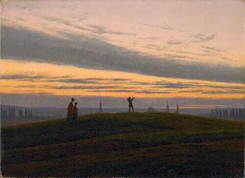 Falling out of favor as the era changed Caspar’s canvases continued structuring his compositions around swaths of land, water, and sky including his later canvases, among them The Evening Star (Freies Deutsches Hochstift, Frankfurter Goethe Museum, Frankfurt am Main).