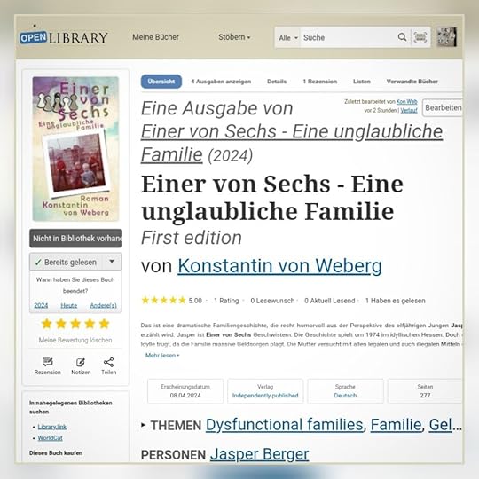 Roman ‘Einer von Sechs’ – Veröffentlicht im April 2024 • Die Ausgaben bei ‘Open Library’
