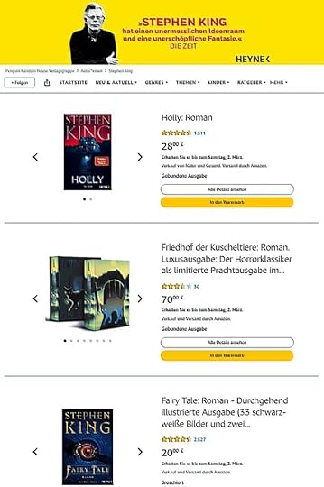 Stephen Edwin King (* 21. September 1947 in Portland, Maine) ist ein US-amerikanischer Schriftsteller. Er schrieb auch unter Pseudonymen, 1972 als John Swithen und zwischen 1977 und 1985 als Richard Bachman. Er ist vor allem für seine Horrorromane bekannt, die ihn zu einem der meistgelesenen und kommerziell erfolgreichsten Autoren der Gegenwart machen. Seine Bücher wurden bis ...