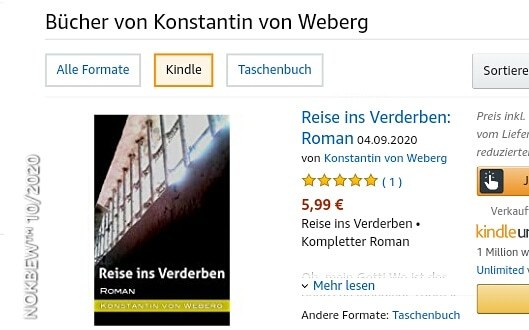 My present novel is available at Amazon. Searce for the Titel “Reise ins Verderben” or my name “Konstantin von Weberg”