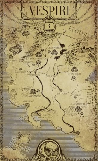 Vespiri is predominantly forested; a land of trees and rich timber, lush green growth, plentiful water and arable fields. The sentinal trees are scattered across a system of Watches which divide the kingdom into manageable areas. Vespers, Greenswatch, Deepwater, Stoneford, East Watch and Marchwood.