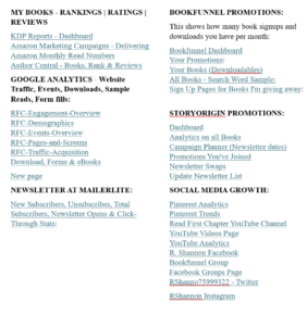 By reviewing these few links, I can get a idea in less than five minutes about how my books are doing and even some future marketing ideas.