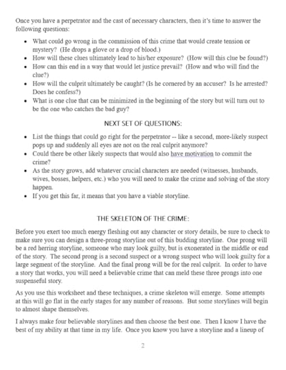By having a long list of every character, street names, crime locations, neighbor names, job titles, etc., you will have all of this information at your fingertips.