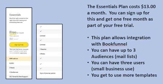 Here is a close-up of the Essentials plan. This plan works well for me as a book marketing platform for the following reasons: