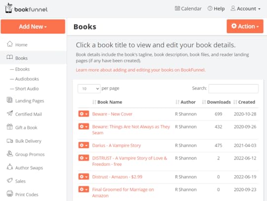 This is a screen shot from one of the books pages. In order to upload an eBook to Bookfunnel, you will need: