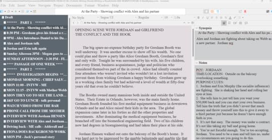 So that’s a minimum of three timelines that I need to track. So keeping these timelines at the top of the scenes as I go from layer to layer of writing, it makes it easier to make sure things are lining up on each timeline.