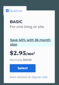 Step One: Find an affordable hosting company. You only need a basic plan. I use bluehost.com, but be sure to watch my video that I’ll post here about how not to get into the trap of buying all kinds of services you don’t need.