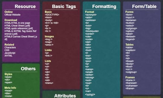 Above is only the HTML Cheat Sheet. This is only a screen shot. The sheet goes all the way down the page. The only coding you will need are at the top. I remember wanting to change a background color, or change the size of a headline, or add more or less margin or padding space and these came in so handy.