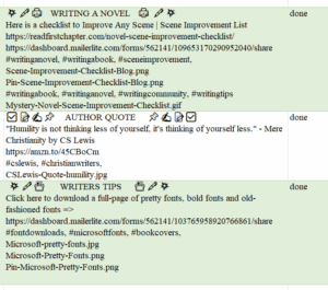 The picture above will show you that I keep everything together for the post, so that it can be an easy copy and paste. I even record the name of the social media post itself. This way, I don't have to shuffle around to find anything.
