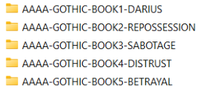 HOW TO SET UP EACH OF THE BOOKS:You will be stripping out front matters and back matters from all the middle books, but leaving the front matters, with a few changes, on the first book, and keeping the back matters on the last book. I'll go into a little more detail below.