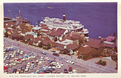 Oh, and about that ferry boat, the SS Sierra Nevada, which was built in 1912 and long serviced as a form of mass transit across San Fransisco Bay. Tallichet actually bought it all the way back in 1961, as we discover in the Oakland Tribune, where we find that he paid $19,750 for it during an eight-day auction, and furthermore that "The 49 year old ferryboat will be moored next to one of Tallichet's waterfront restaurants and rented to Sausalito merchant Luther W. Conover as a variety import store. Conover converted the old ferryboat Berkeley into the Trade Fair store two years ago in Sausalito."