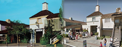 "To say the new buildings are authentic reproductions is certainly true and they are as cute and quaint as one could imagine. They've even gone so far as to build some of them off plumb, with caving roof lines, crooked doors, and walls that appear to careen off into the water. Streets are narrow and winding, paved with brick and including the center drain for runoff water..."