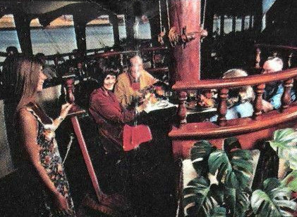The Harbor Commission agreed, opining that Tallichet had never fully fulfilled the terms of their 50 year agreement - no Mexican or Danish Villages, no motor hotel - and was negligent in maintaining his properties. This bad publicity did cause a minor spending spree at Ports O Call. Repairs began, and The Ports O' Call restaurant closed in September for what was reported to be a $1 million renovation, although employees complained they were not informed of the closure until a week before. The new look added a second level with banquet facilities, although the Polynesian theme was done away with almost entirely. Described as "Nautical Victorian", photos of the place which survive online resemble more an 80s retirement home recreation room with bits of tropical decor here and there - a sad end for a restaurant which once had a sunken ship out front.