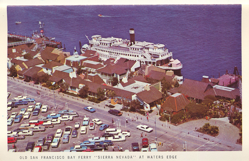 Oh, and about that ferry boat, the SS Sierra Nevada, which was built in 1912 and long serviced as a form of mass transit across San Fransisco Bay. Tallichet actually bought it all the way back in 1961, as we discover in the Oakland Tribune, where we find that he paid $19,750 for it during an eight-day auction, and furthermore that "The 49 year old ferryboat will be moored next to one of Tallichet's waterfront restaurants and rented to Sausalito merchant Luther W. Conover as a variety import store. Conover converted the old ferryboat Berkeley into the Trade Fair store two years ago in Sausalito."