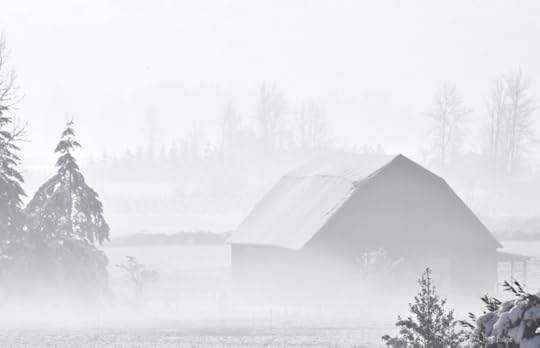 I snapped our neighbor’s barn a couple of times during Christmas week, as snow and fog shrouded its 1890’s frame.