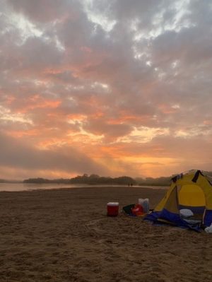 Finding Your Tribe: Sunrise on the RiverOverwhelmed and slightly defeated, we patiently waited for the sun to rise. I sat in my not-so-magical unicorn onesie in my soaked camping chair digging my toes in and out of the cold, damp sand. I was shivering, cold, exhausted, in pain. All my muscles were tense. I had failed to do the one thing my physical therapist had told me to do, get a good night’s sleep. As far as sitting, no position was comfortable. My trusty tent was now uninhabitable. I had nowhere to lie down.