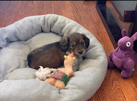 Two days after Coco crossed the rainbow bridge, I was a complete mess. I couldn’t work, couldn’t eat, couldn’t stop crying. That’s when I met a beautiful couple in my neighborhood who had just had a litter of long-haired miniature dachshunds. After an hour of getting to know each other, and after me full on ugly crying about Coco while cuddling one of their little brown bundles of fur and happiness, they decided to “bless me” with her–they literally gave me a new puppy. I’ll never forget when they said: “We know she can’t replace your Coco, but we hope she can help bring joy back into your heart.”