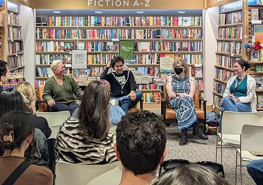 Let me start at the beginning, just for context. I started off with a panel discussion booked with my preorder partner store, A Novel Idea. The idea of doing a single author event or a launch event filled me with the kind of anxiety I usually reserve for Cheez Whiz. I’m not a total noob to book events. When The Trajectory of Dreams was published about a decade ago, I had a few events–and one of them was of the variety where hardly anyone comes to hear me blabber. It wasn’t fun. So this time around, I thought, hey, discussion panels. Festivals. Cons. But then an unexpected thing happened: bookstores started emailing me to ask if I’d do events there, too, some of whom didn’t really do discussion panels. AMOLM is out with a small press… so of course I’m not going to say no. And so that’s how I ended up at Big Blue Marble bookstore this past Friday, practically awash in hives that I had dragged the wonderful Stephanie Willing (voice of Lemon in the AMOLM audiobook edition) down from northern NJ to be my conversation partner, only for it to be us and my husband in a room, crickets chirping.