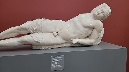 So my guess is that many of the statues in the Glyptotek had once been victim to penis removal and replacement with some kind of fig leaf or other covering–and the Glytotek folks restored the sculpture to the original state as best they could. There is a display of broken-off noses in the Glyptotek . . . which makes me wonder if they might have a box of broken-off penises somewhere in the archives. Or if deep within the bowels of the Vatican, some poor guy in charge of the art collection hid a locked chest of marble penises. One day, hundreds of years from now (providing we survive climate catastrophe), will archeologists discover these long-lost caches of forbidden anatomy? Will the Glyptotek decide to put up a board of removed penises? It’s hard to imagine what the signage for that might look like.