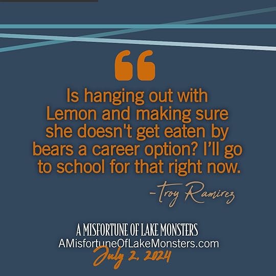 I woke up at 4am (which isn’t unheard of–I’ve been an insomniac ever since I had a severe COVID infection in the pre-vax days), worried about how today was going to go. Being tired and overexcited is a heady combination. So yeah, you can pre-order if you wish (see AMisfortuneOfLakeMonsters.com for more info on that), add it to your Goodreads TBR list (or wherever you’re tracking your books these days), or head over to this link to see all the graphics I made for today and post one yourself somewhere. The more, the merrier!
