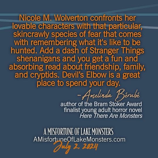 Oh, and look at that! Lake Monsters has its very first blurb–from the very wonderful Amelinda Bérubé (whose book Here There Are Monsters spooked me right the hell out). Did you know that Amelinda also has a book coming out in July 2024? Go check out the trailer and marvel at what’s coming!