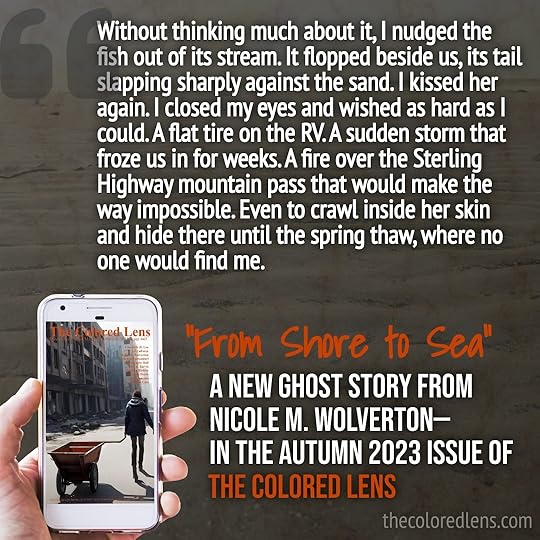 And today, that short story has been launched into the world! “Shore to Sea” is published in the Autumn 2023 issue of The Colored Lens. If I were going to pitch this story to someone, I’d tell them it’s the a ghost story and a love story—Jeannie has to leave Homer with her aunt in the morning, and it’s her last night with love-of-her-life Emma; in finding a way to make the universe keep them together forever, something goes awry.