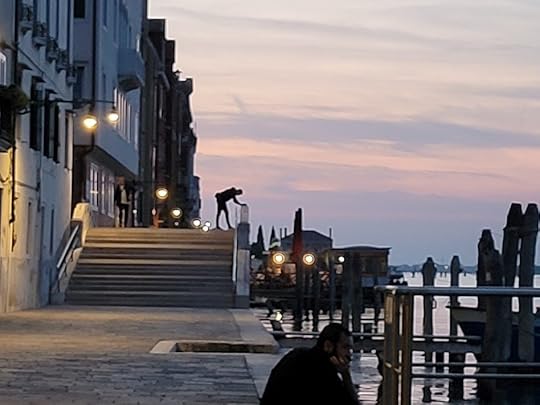 I love the idea of situating a character with aquaphobia–the fear of water–in Venice, Italy. I visit Venice fairly regularly (since 2017, I’ve found myself in Venice four times–three times for the art biennale, and once just because), and I often wonder if anyone lives there who is afraid of water… and how they deal with it. Not only is Venice surrounded by water at every turn, the water is a regular threat to Venice’s very existence. Acqua Alta doesn’t affect all parts of Venice, but there’s also the fact that Venice is sinking at a rate of 1-2mm each year and the lagoon waters are rising. That would be terrifying for someone with a water phobia. It’s nearly impossible to get away from the sound of water, let alone the sight of it.
