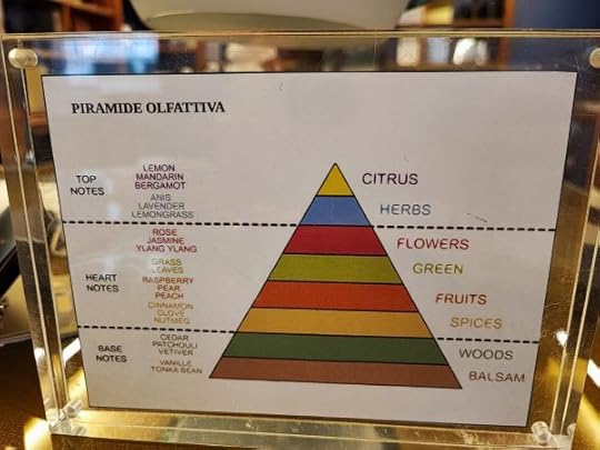 The first thing Joan Giacomin–the brand ambassador for The Merchant of Venice, a Venetian “nose” and make up artist, and the workshop educator–asked during our workshop: “Are you passionate about perfume?” Er, no. No, I am not. But I’m curious… and as a writer it makes sense to understand as much as I can about scent. The workshop, held in a small room on the second floor of the Studium book store off San Marco Square, is two hours long. During the first half Joan takes you through half a dozen-ish historical periods, talks about the role of perfume during those periods, and you smell three scents associated–singly and then together. This is how I discovered the following: