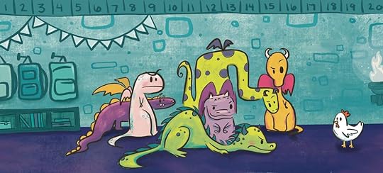 “Remarkable Dragon”- a spread from the dummy Kathryn worked on during the PB Rising Stars Mentorship about a chicken that goes to school at an all-dragon academy © 2022 Kathryn Rammell Art