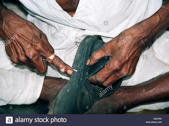 Cobbler at work.Service at the doorstep or home delivery is touted as a new revolution in retail.