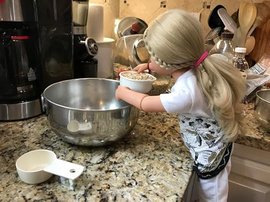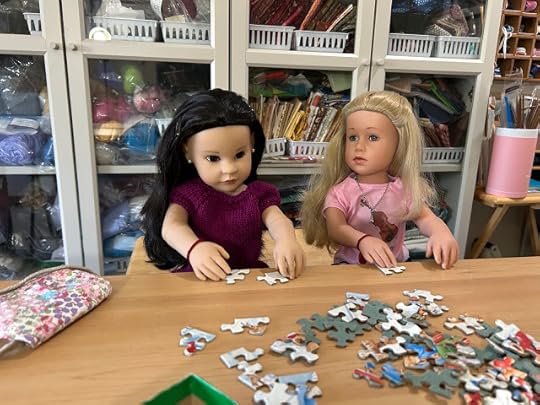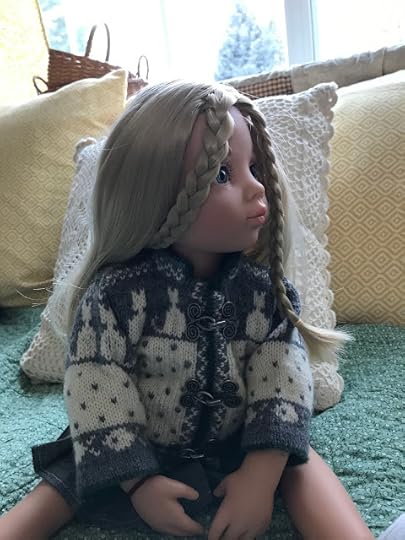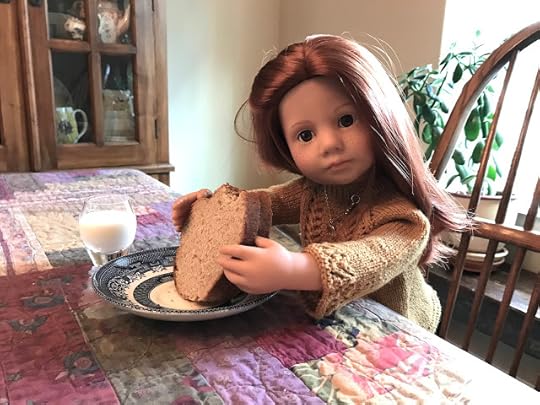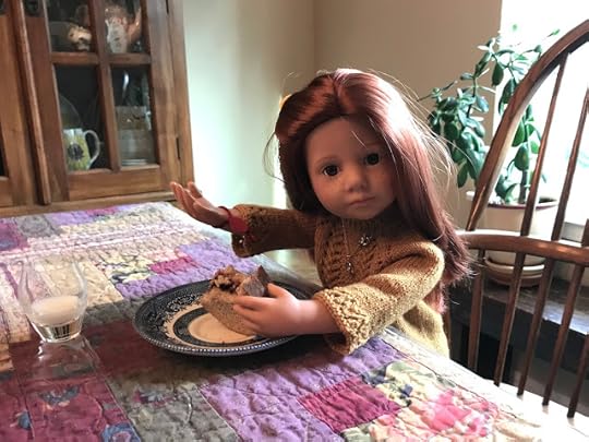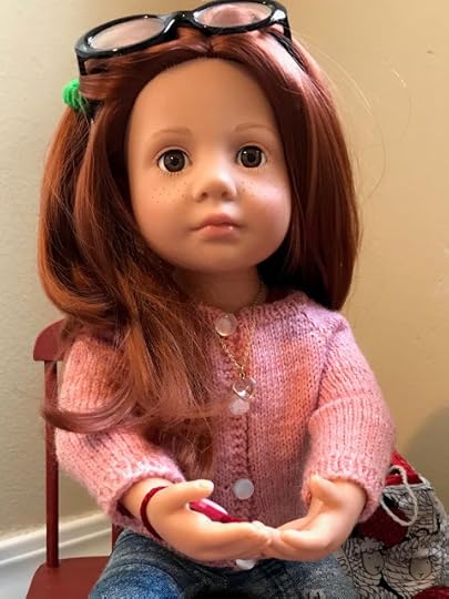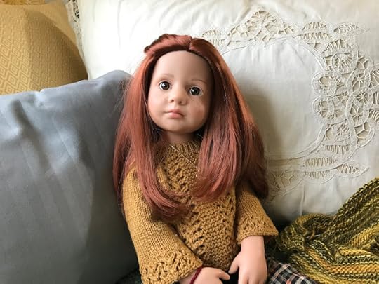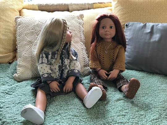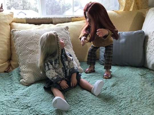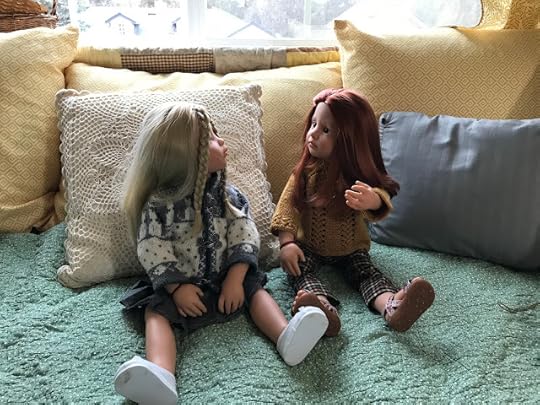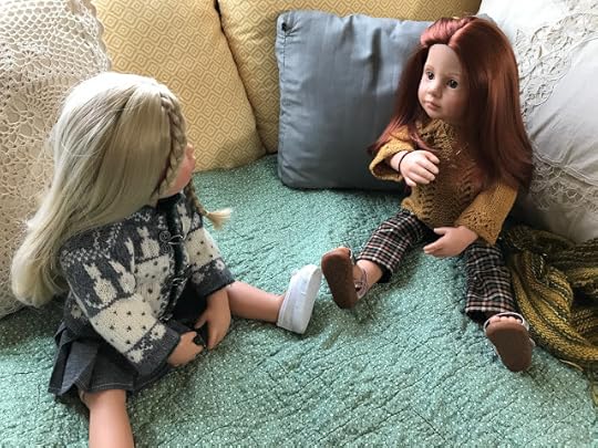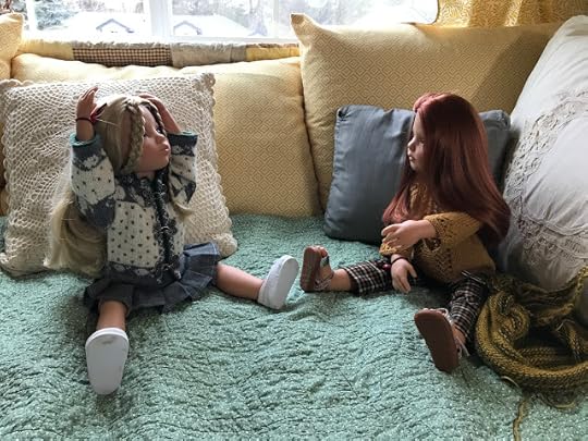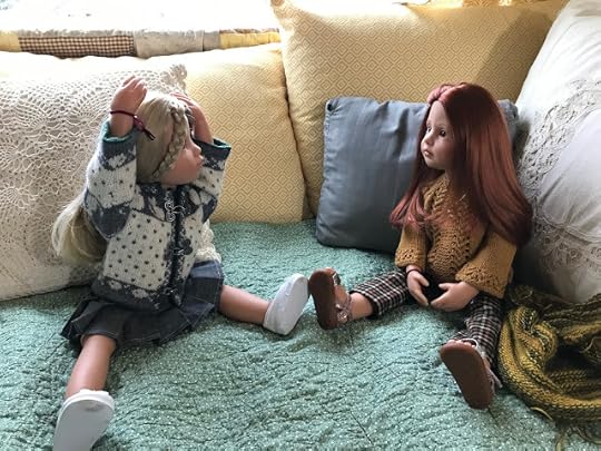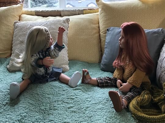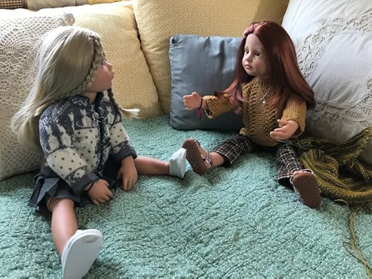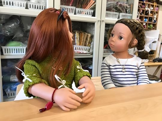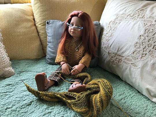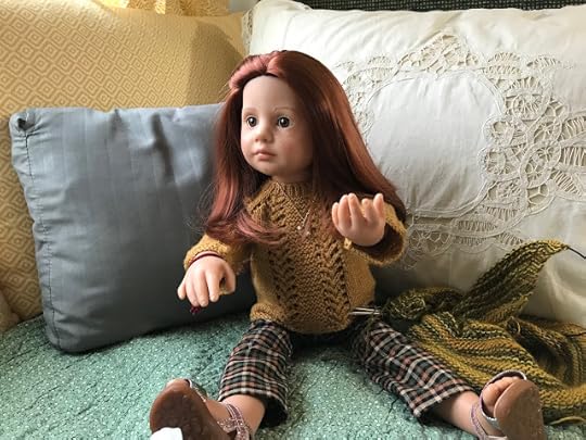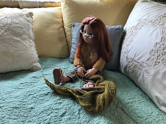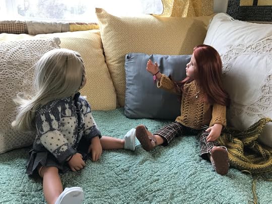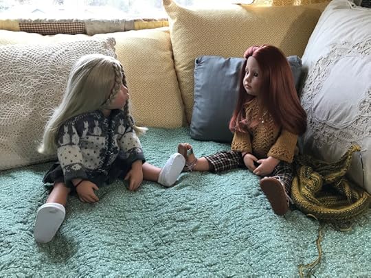 While the two younger dolls climbed up onto the couch, Mandy removed her glasses and put her knitting down. “I’m happy to meet you, Olivia,” she said and shook Olivia's hand.