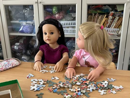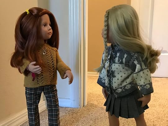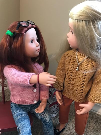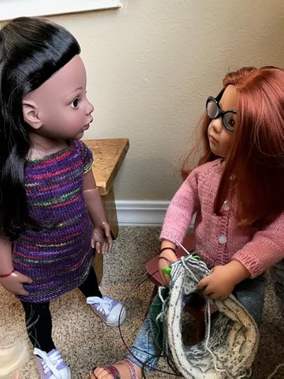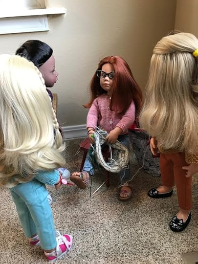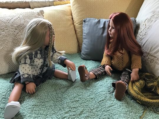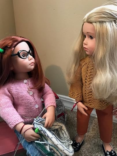 As expected, Mandy was sitting in the living room, knitting. She looked up when the two dolls came in through the front door.