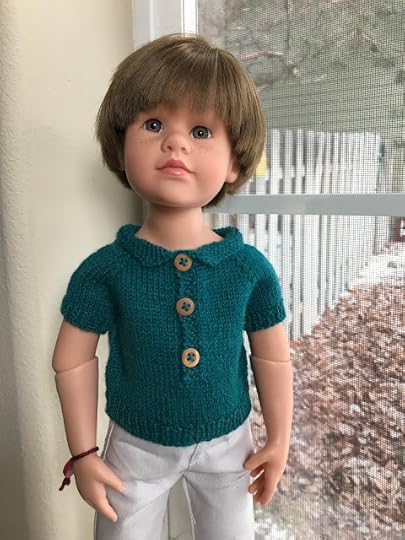We also have a knitted polo shirt. It's called the Everyday Play Shirt. You make it just the same as the Everyday Play Dress, only it stops before you get to the skirt, and it has a collar. Thank you Billy! (That was a quick change!)