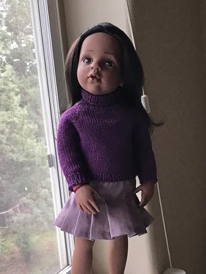 You may have noticed our pleated skirts in some of the photos with sweaters. They are all made from the Lotte's Pleated Skirt Instructions. You can do the pleats different ways. If the fabric has lines in it, like a plaid, you can follow the lines to make pleats. There are instructions included for Pippa's size. too. Here's Mariah wearing the Wonderland Turtle in purple and the pleated skirt in lilac.