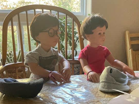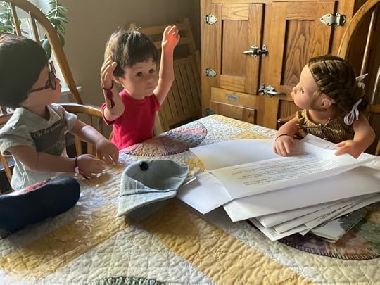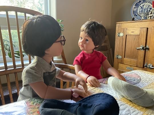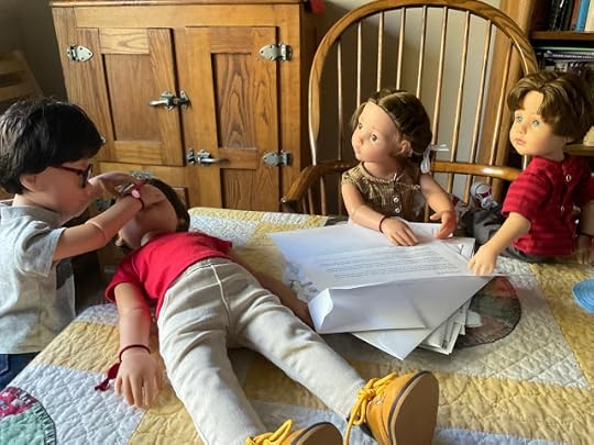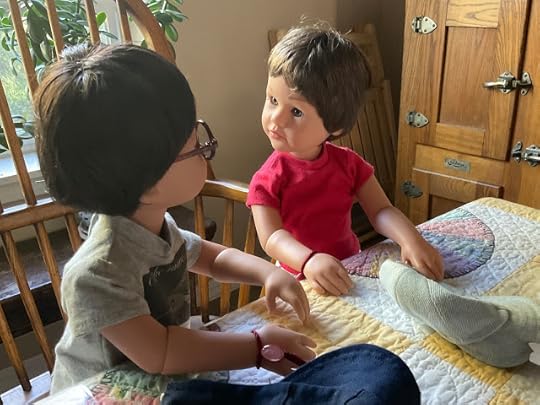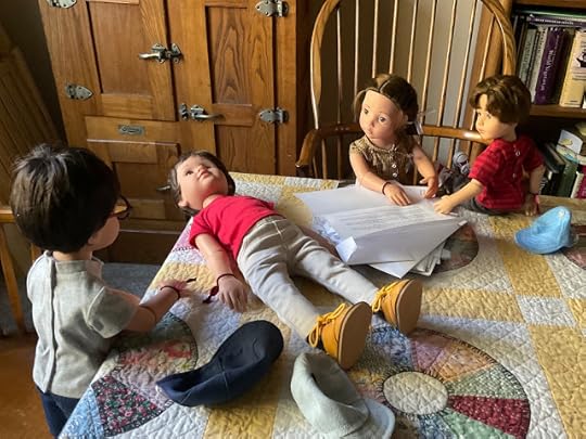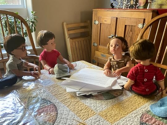 "Dolls without knee joints and elbow joints," Billy went on, not willing to be distracted, "they have trouble doing things like picking up something off the floor. They fall down a lot, and, well, then they have trouble getting up again without help." He lay down on the table to demonstrate what he was talking about, as if the others had never seen a doll lacking knee joints lying on the floor.