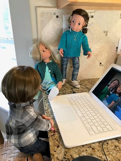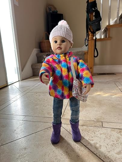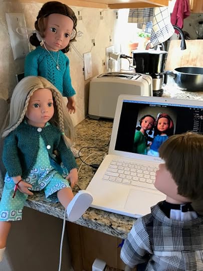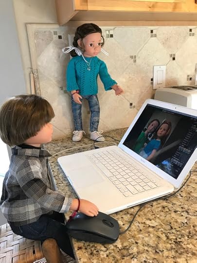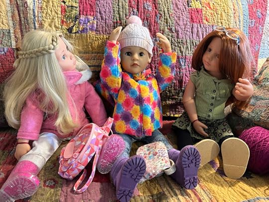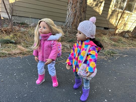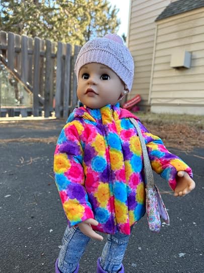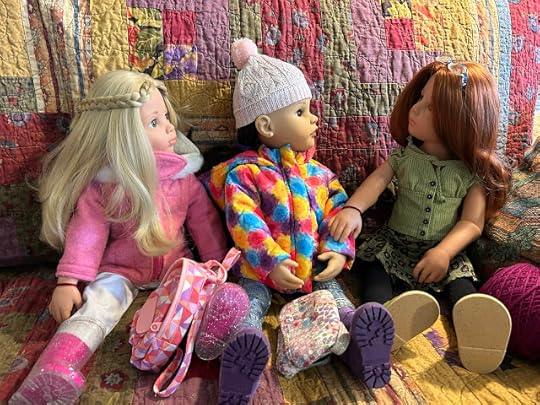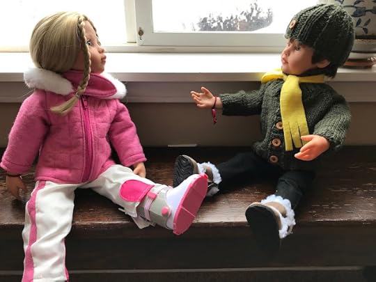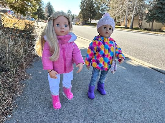 "Maybe your vinyl is still warm from being indoors," Billy suggested. After Billy thought he had enough photos, the two dolls went back through the dog door into the house. They wiped their feet and took off their boots, which were covered with snow. They put their boots on a towel. Then they took off their jackets and hung them up. When they were back in their indoor clothes, Billy sent his photos of Jolena to the computer.