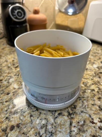 “And when you put something on the scale to weigh it,” Jolena continued, “like, say, pasta, if the recipe gives the amount you need in weight instead of volume.”