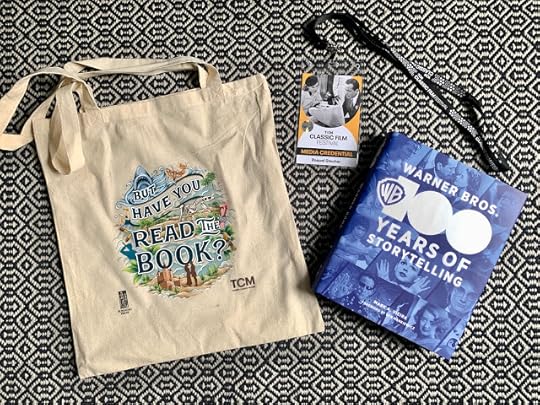 On Wednesday I picked up my media badge and received a book themed tote bag (But Have You Read the Book by Kristen Lopez) as well as a copy of Mark Vieira's new book Warner Bros. 100 Years of Storytelling.