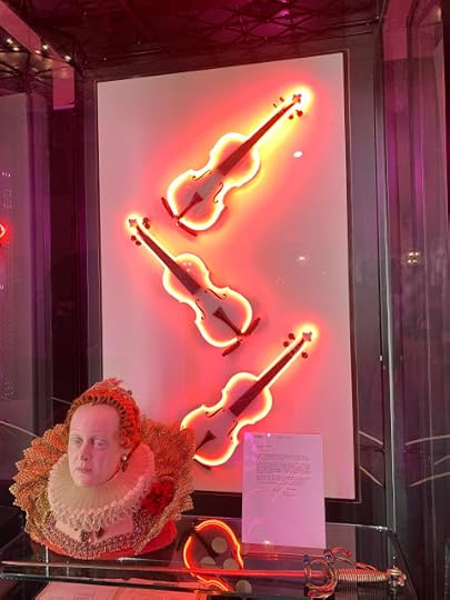 Later in the afternoon I attended the Media Welcome Event in the Blossom Room at the historic Hollywood Roosevelt hotel. TCM transforms the Blossom Room into Club TCM for the festival. The space includes a mini museum of props as well as a bar. There are events happening at Club TCM throughout the festival and it becomes the central hub for the long weekend. This year they had a really cool display of Warner Bros. memorabilia for the 100th anniversary. I was particularly taken with the three remaining intact violins from one of Busby Berkeley's numbers in the Gold Diggers of 1933. They also had Berkeley's large leather scrapbook on display too! Both were very cool to see.