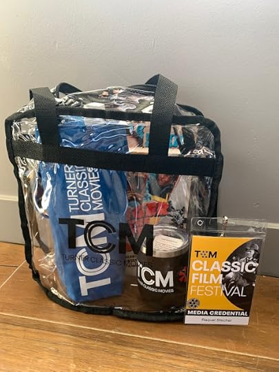 After the bookshop, I headed over to the media room at the Hollywood Roosevelt hotel to pick up my press badge and swag bag. The clear plastic tote came with a bottle of TCM merlot in a special carrier bag, a small tumbler, a copy of Danger on the Silver Screen: 50 Films Celebrating Cinema's Greatest Stunts and an issue of Movie Maker magazine. Due to COVID protocols, I also had to submit health information in order to get a wristband for entry into any and all TCMFF events. I had to wear this through the four days of the festival.
