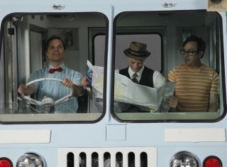 Backwash is directed by the guy who did Harold & Kumar Go To White Castle and written by Joshua Malina, and another guy who did Tenure, and includes appearances by Jon Hamm, John Stamos, Sarah Silverman (president of the Joe Franklin fan club), John Cho, Allison Janney, Hank Azaria (of Herman's Head fame), Michael Vartan, Steven Weber, Jamie-Lynn Sigler, Ken Marino, Dule Hill (sorry, I couldn't find the accented "e"), Jeffrey Ross (known and loved as the third from last performer on many celebrity roasts), Fred Willard (the real genius behind Martin Mull's career), Mary Lynn Rajskub, David Wain, Noah Emmerich, Joe Lo Truglio and Lindsey Kraft. (Some of whom must have kids. Or access to foundlings.) As a bonus, Bill O'Reilly appears in an unbilled cameo as a giant salami. (At least, it looked like him.)