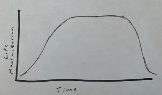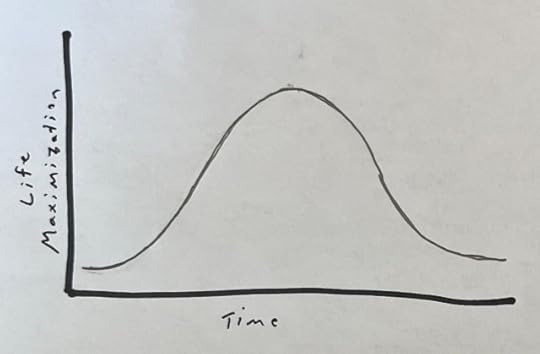 To help reframe my perspective on the phases of life, I have been thinking about how you would plot them on a graph. The x-axis is time and the y-axis is life maximization. By doing this, I was quickly able to see how I needed to change my perspective.
